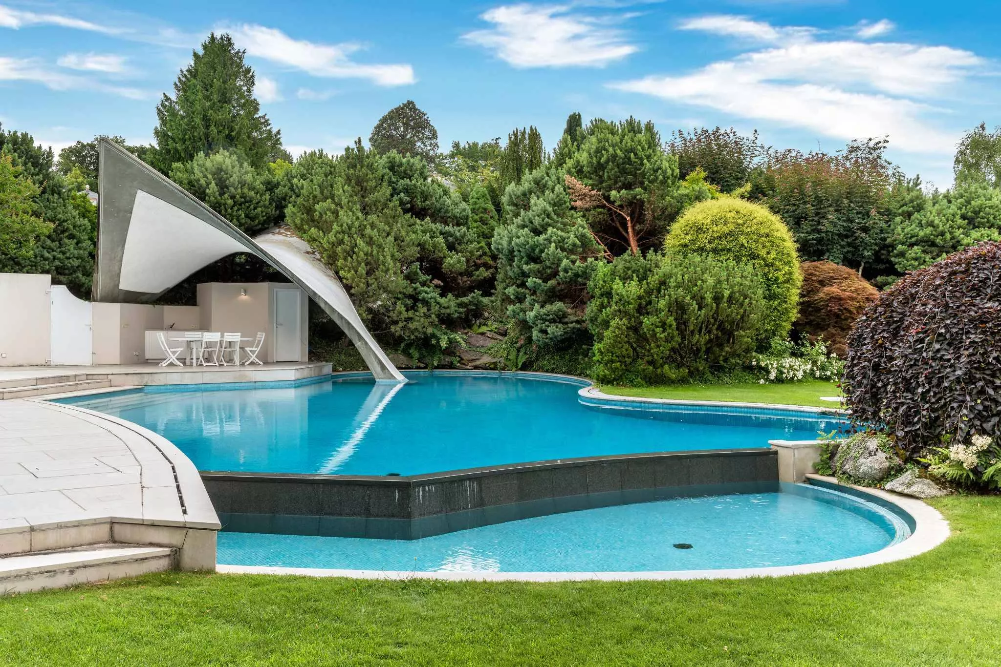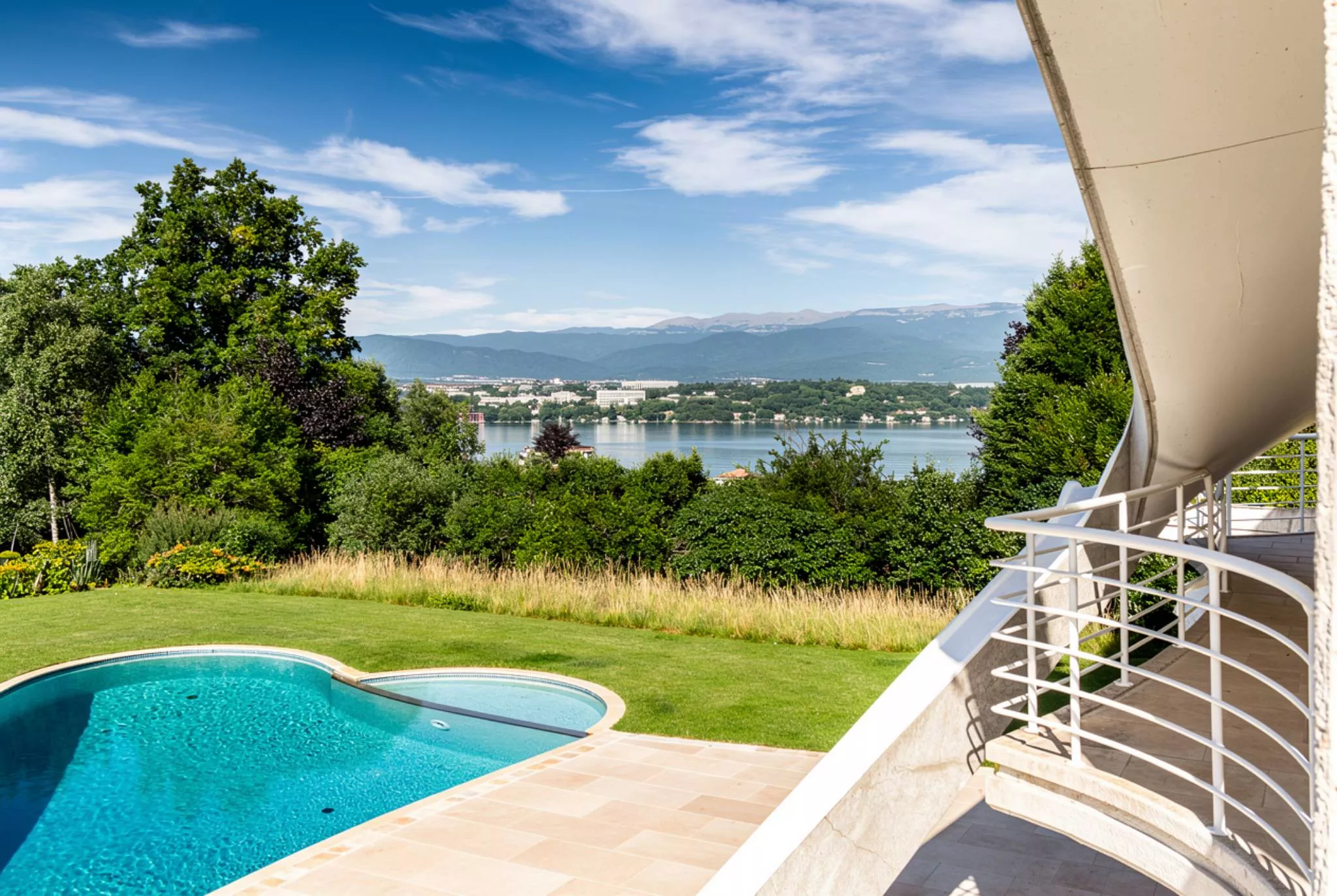 Erigée sur une parcelle de près de 3’500 m², la maison bénéficie d’un superbe jardin magnifiquement arboré avec une piscine orientée sud/ouest.