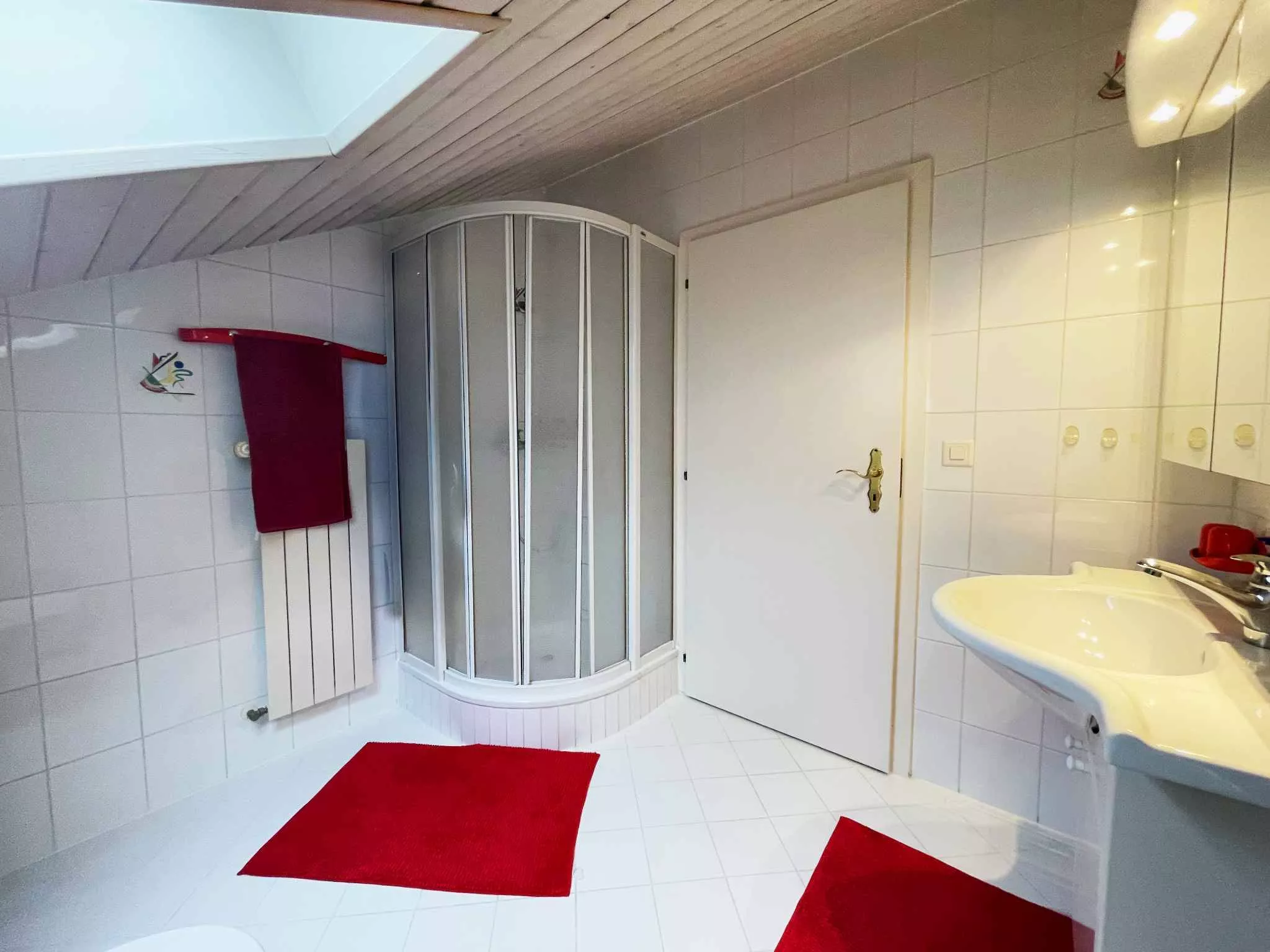 Il est composé d’une belle entrée avec salle de douche/wc/lavabo, d’un magnifique séjour avec cheminée avec accès à une grande terrasse orientée sud, d’une belle cuisine fermée totalement agencée, d’une salle à manger, d’une salle de bains avec baignoire et de 2 grandes chambres à coucher.
